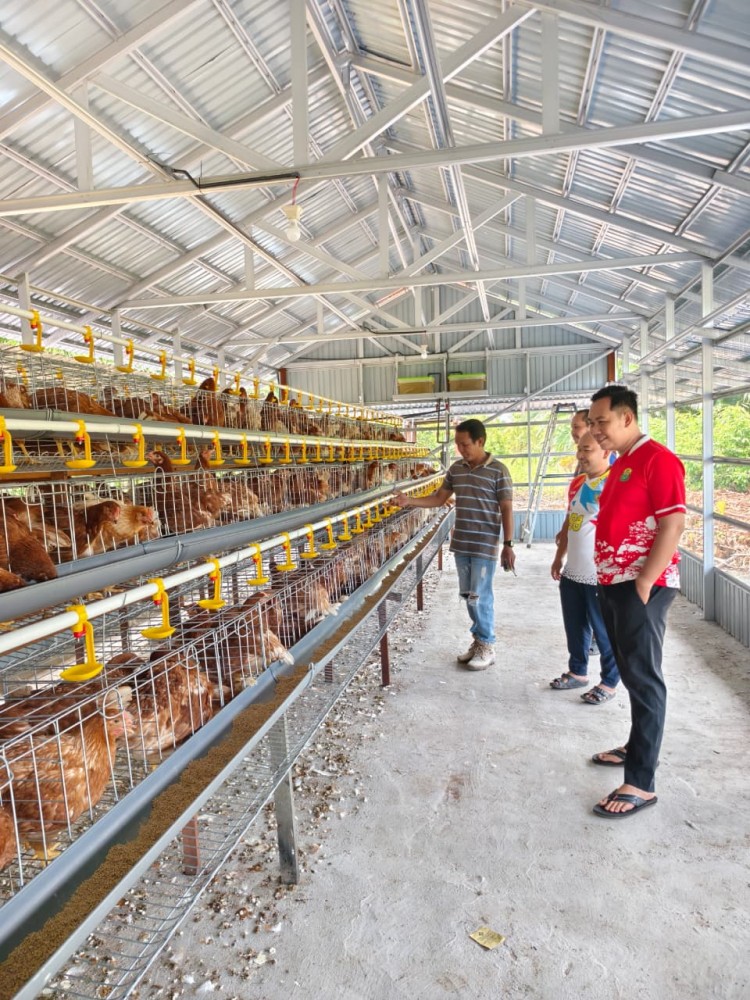 TABUKAN- Desa Tabukan Raya, Kecamatan Tabukan, Kabupaten Barito Kuala mulai mengembangkan usaha ekonomi masyarakat melalui pengembangan BUMDes Karya Membangun. salah satu unit usaha yang di kembangankan pengelolaan budidaya ayam petelur dengan populasi sekitar 450 ekor.